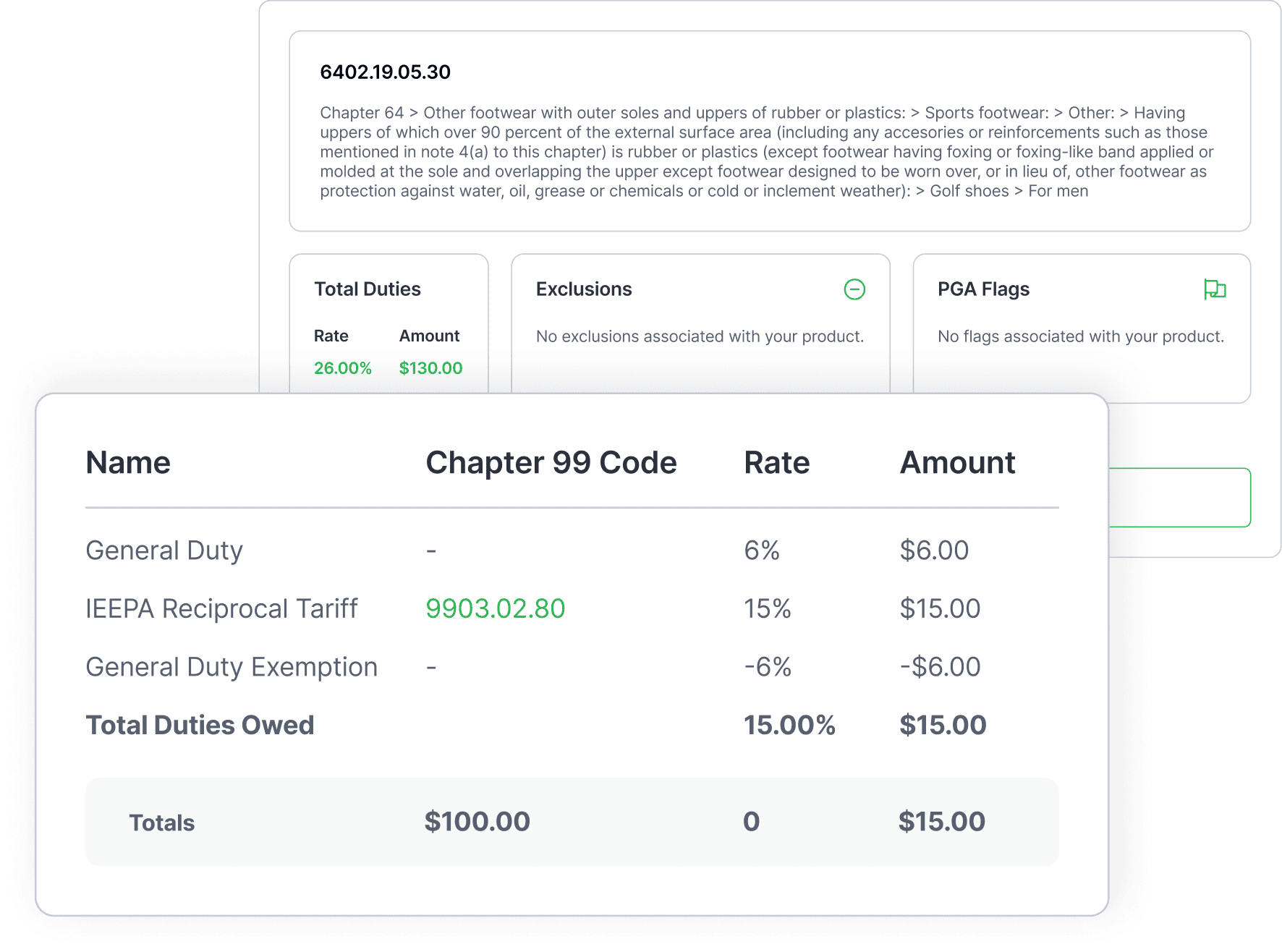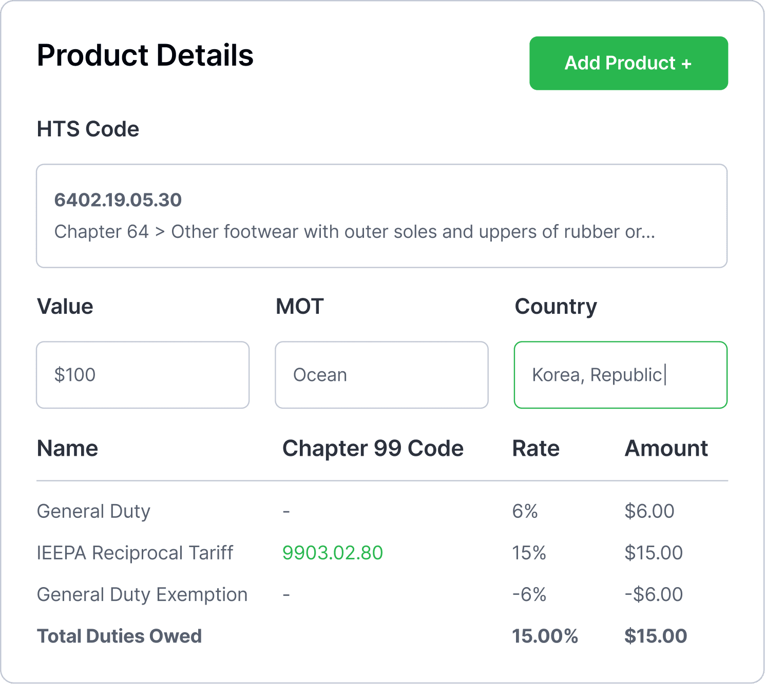 Real time tariff data and duty calculations for importers who need accuracy, fast.